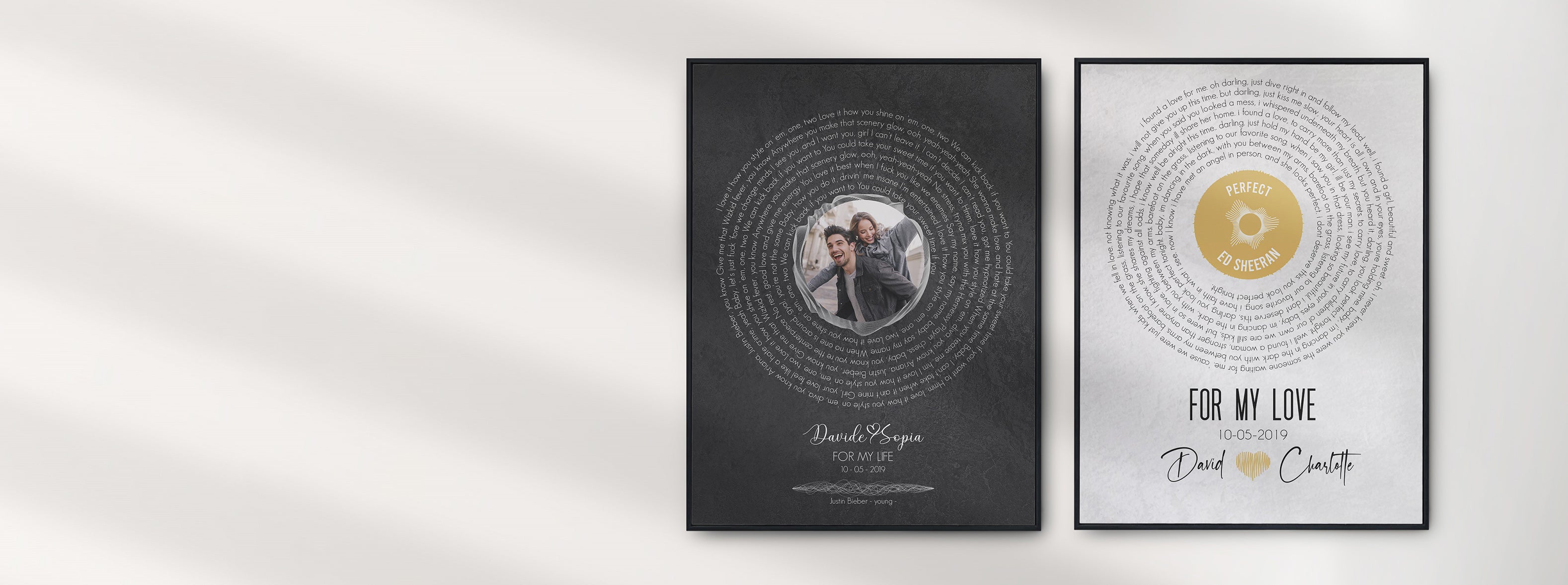 Pick a song that means the world to you — your first dance, a shared anthem, or a tune that marks a memory. Just tell us the title and artist, and we’ll transform the lyrics into something unforgettable.